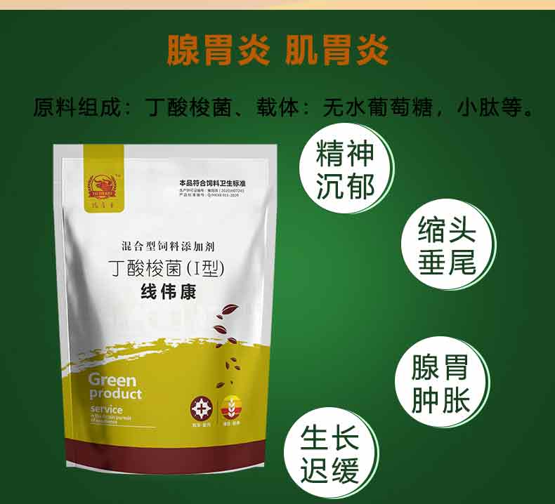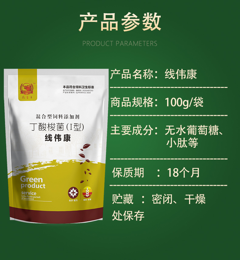 【原料组成】丁酸梭菌、载体:无水葡萄糖 小肽等。