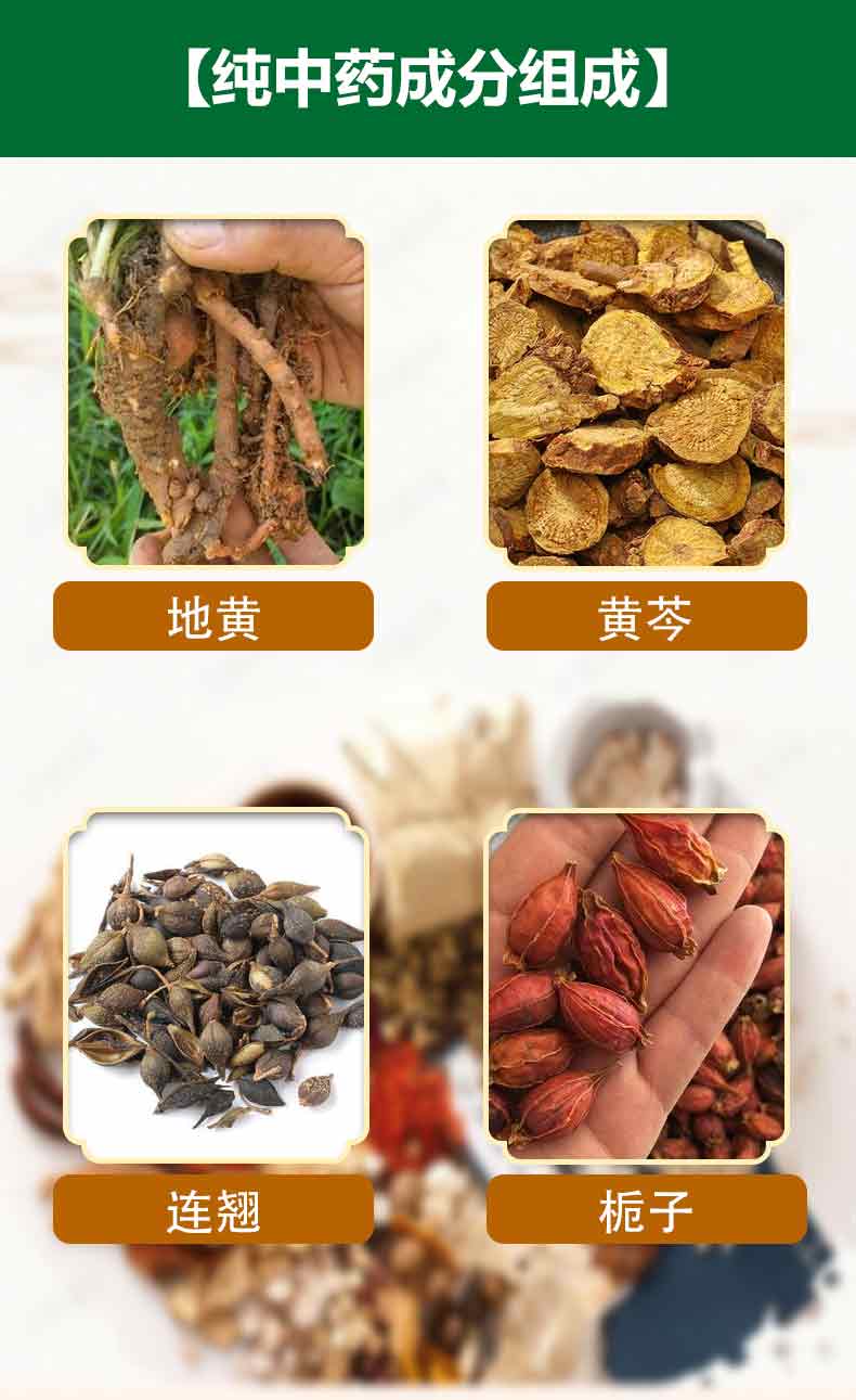 【主要成分】地黄、栀子、黄芩、连翘、玄参等中药萃取物。