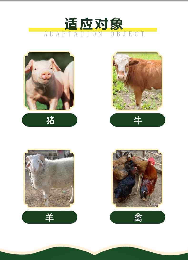 【适用对象】猪、牛、羊、兔、貂、狐、禽等。