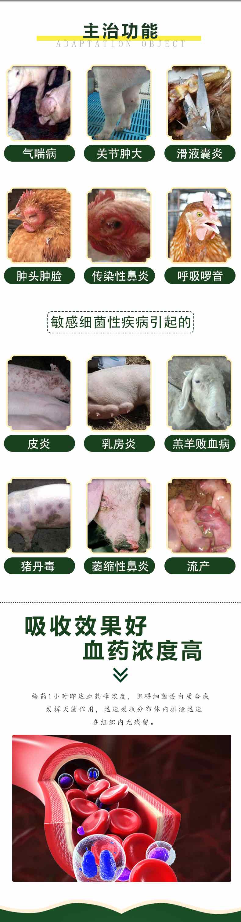 【作用用途】大环内酯类抗生素。用于禽革兰氏阳性菌及支原体感染。
